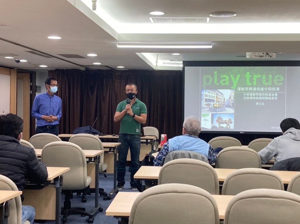 110年12月25日體育紛爭仲裁研習 圓滿成功 2021-12-272021-12-27 / 臺灣體育運動暨娛樂法學會 本次課程上午由中華運動禁藥防制基金會陳智弘組長講授運動禁藥違規處分與救濟,下午則由臺北市政府體育局袁守方科長為大家講解台北市運動選手的「選訓賽輔獎」制度,參與學員踴躍發言、討論熱烈,課程圓滿落幕。 分享此文: 按一下即可分享至 X(在新視窗中開啟) X 按一下以分享至 Facebook(在新視窗中開啟) Facebook 喜歡 正在載入... 相關