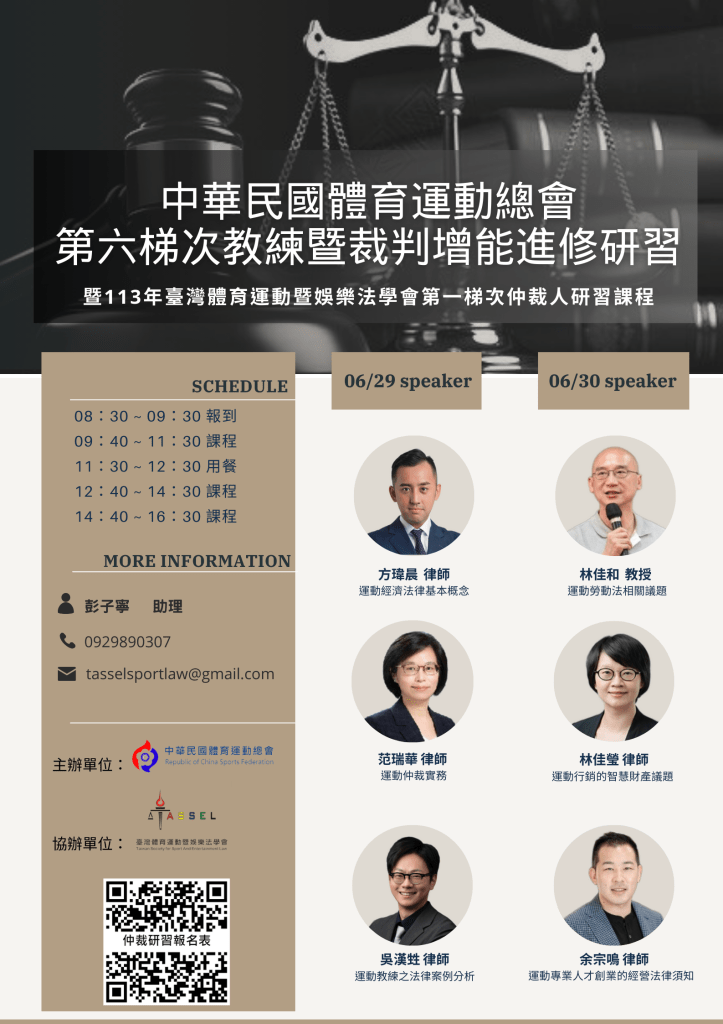 連絡電話:0929890307聯絡信箱: tasselsportlaw@gmail.com