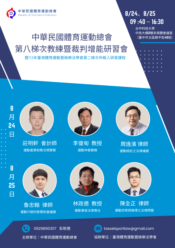 連絡電話:0929890307聯絡信箱: tasselsportlaw@gmail.com