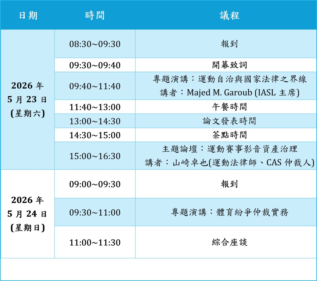 2026年運動組織自治與賽事影音資產國際法律研討會即日起開始報名與論文投稿